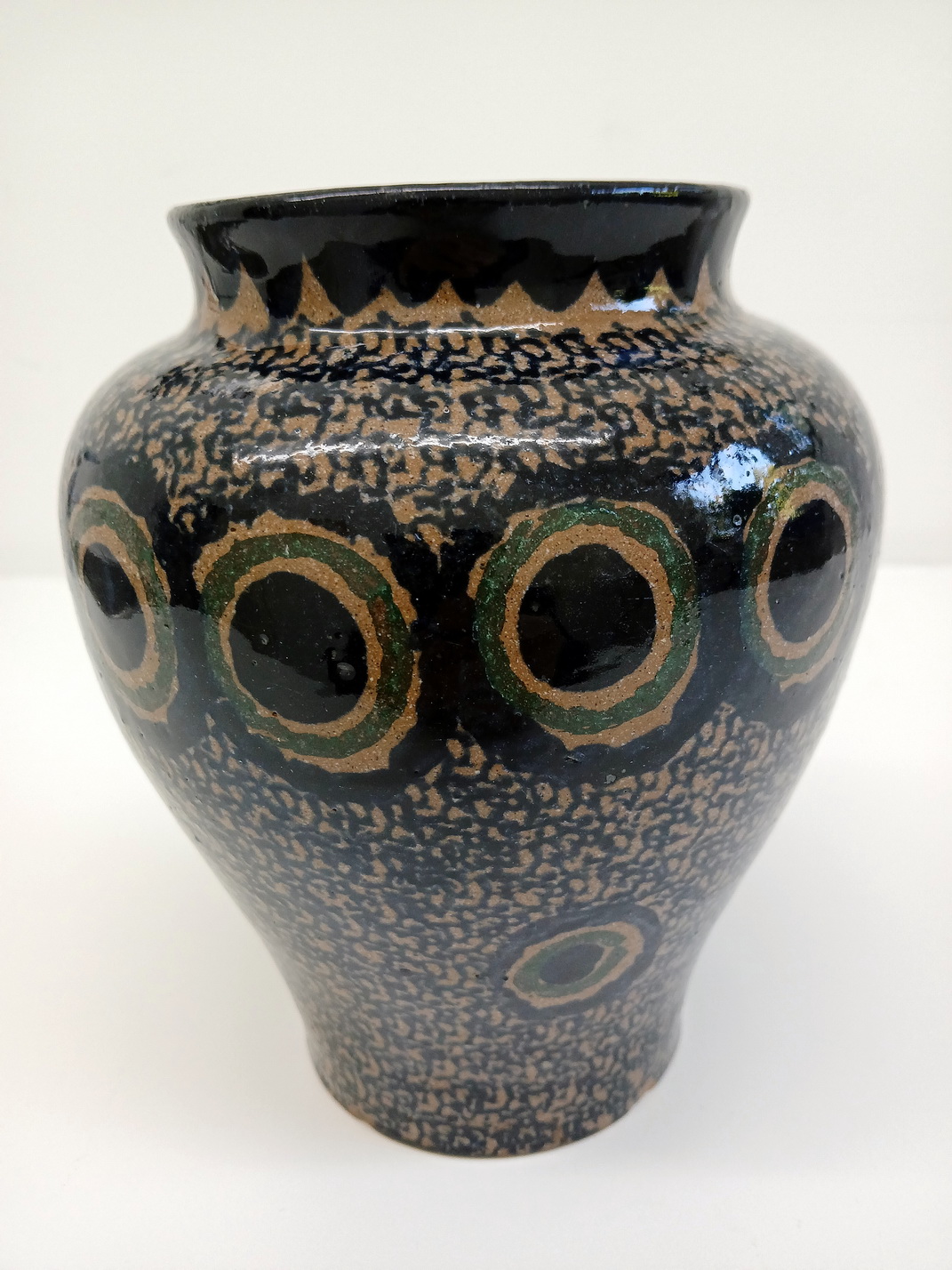 Ba-Fe 208 Vase, Schwammdekor, H 12cm, M1, geritzt: 3 bräunlich/rötlicher/dunkler Scherben