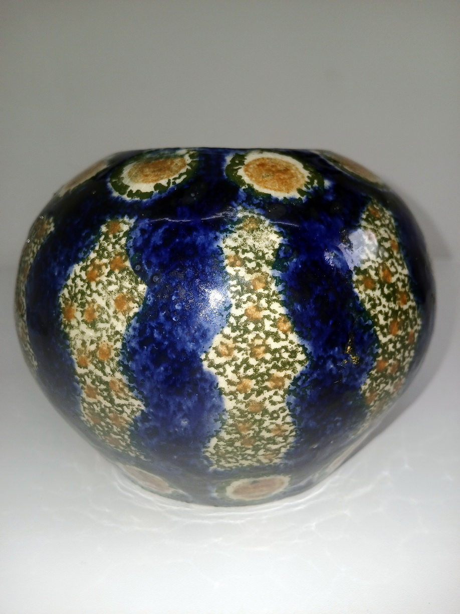 Ba-Fe 746 Vase, Schwammdekor, H 9,5cm, M1, geritzt: 3 bräunlich/rötlicher/dunkler Scherben